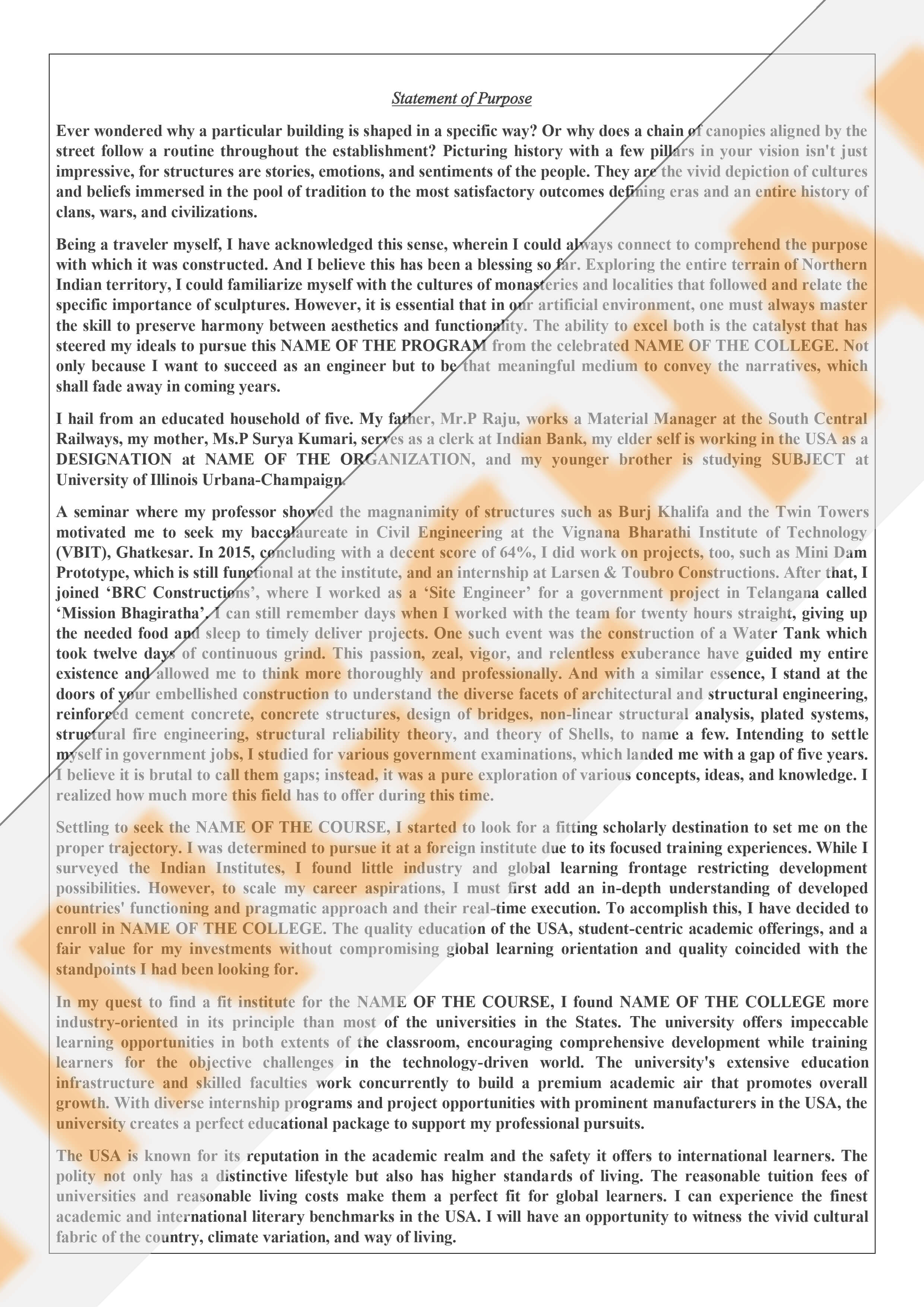 Our company is dedicated to helping individuals achieve their academic and professional goals by providing expert support in crafting application documents. Our SOP Editors specialize in creating tailored Statements of Purpose (SOPs), resumes, study plans, and other essential materials. By aligning each document with the specific requirements of academic programs, scholarships, and visa applications, we ensure our clients' applications stand out. With a focus on personalization and quality, we strive to enhance our clients' chances of success in competitive environments, guiding them toward their desired opportunities.